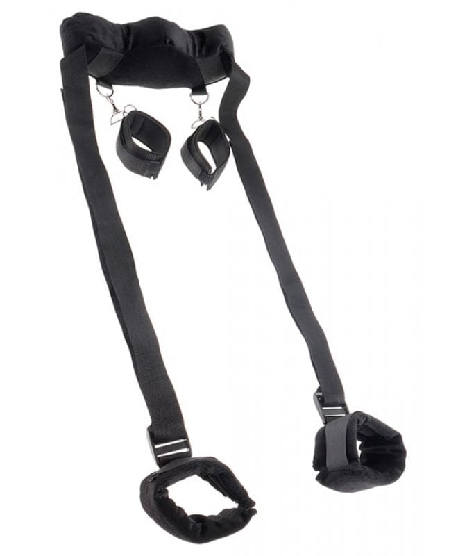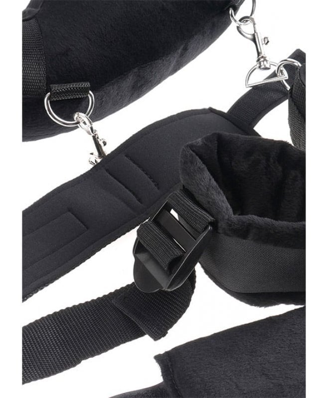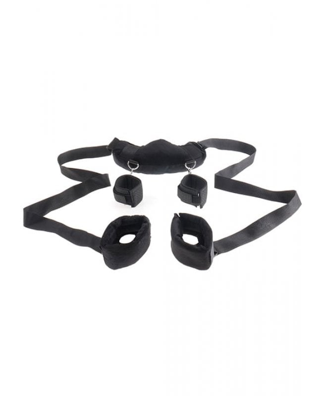 Sprederen Position Master Cuffs består av håndlenker, fotlenker, polstring til å ha bak nakken eller foran brystet, og reimer som knytter alt sammen. Reimene består av nylon mens lenkene er laget i et mykt, pusete materiale. Denne er superkinky, men også veldig nyttig! Lek dere frem med ulike posisjoner og ta kontroll!
