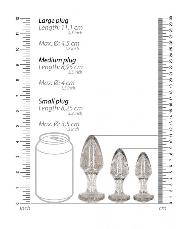 Nysgjerrig på analplugger, men ikke helt turt å prøve? Her har vi løsningen for deg. Analplugg-settet har 3 uimotståelig og glitrende buttplugger i forskjellig størrelse. Begynn med den minste analpluggen og jobb deg oppover til en stadig større størrelse - og nytelse! Perfekt for nybegynnere, eller for deg som er glad i glirende god analsex.