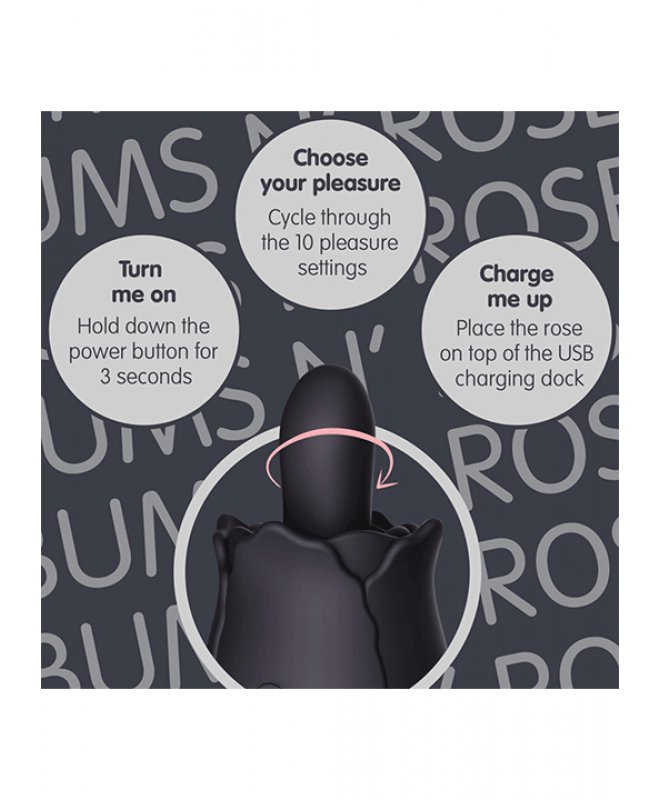 Den detaljerte utformingen av Bums N Roses sørger for å etterligne følelsen av en slikkende og virvlende tunge fra din partner, med en rekke unike innstillinger. Det vanntette designet gjør den ideell for å utforske anal stimulering alene eller sammen med din partner under spennende øyeblikk.