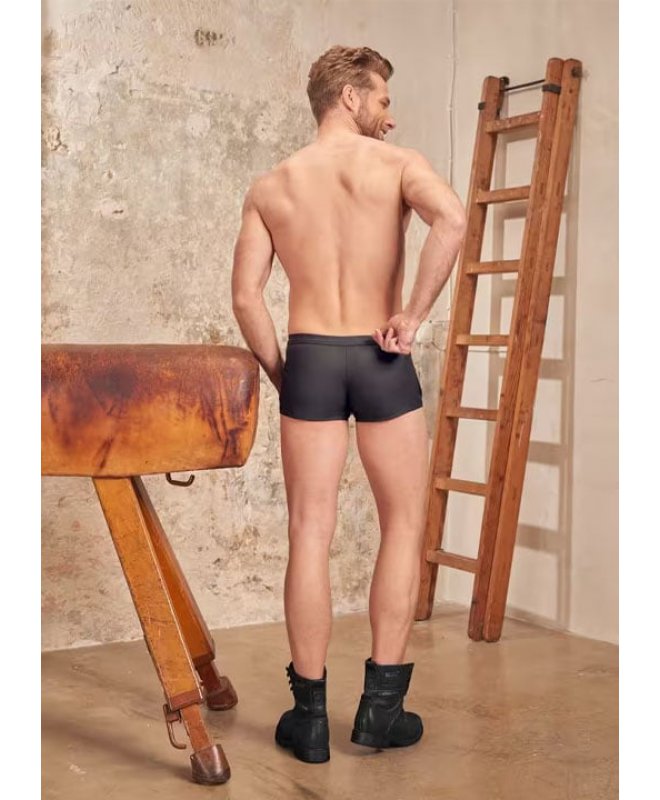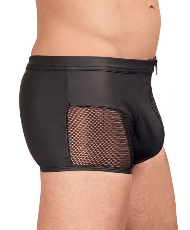 Disse svarte lærbokserne er laget for deg som liker når undertøyet spiller en rolle i leken. Stoffet legger seg tett mot kroppen og gir den glatte, glinsende følelsen av lær – akkurat nok til å skape spenning. Glidelåsen foran er både praktisk og pirrende, og gjør det lett å ta ting dit du vil, når du vil.