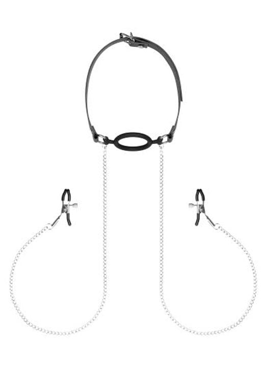 Denne kombinasjonen av nippleklyper og gag-ring tar BDSM-leken til et nytt nivå. Perfekt for deg som liker både visuell opphisselse og intens kroppsrespons.