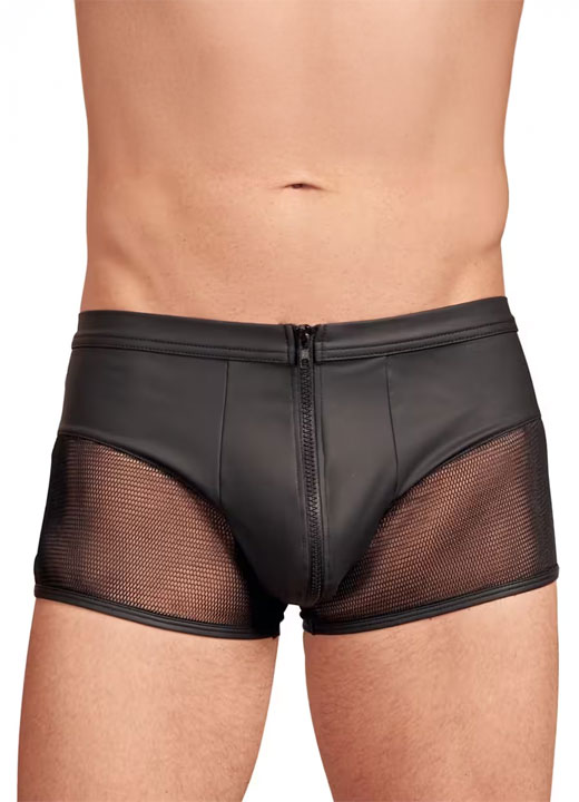 Disse svarte lærbokserne er laget for deg som liker når undertøyet spiller en rolle i leken. Stoffet legger seg tett mot kroppen og gir den glatte, glinsende følelsen av lær – akkurat nok til å skape spenning. Glidelåsen foran er både praktisk og pirrende, og gjør det lett å ta ting dit du vil, når du vil.
