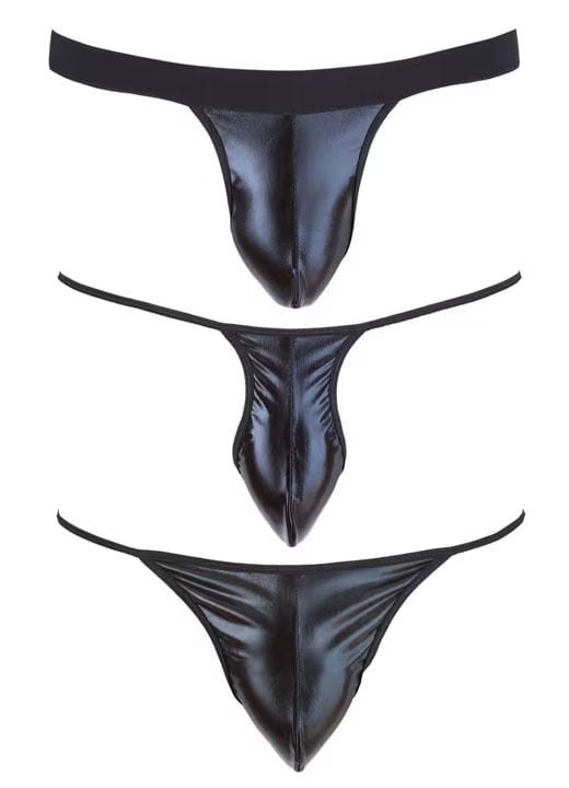 Dette settet fra NEK inneholder tre svarte favoritter du alltid kan stole på: en minitruse, en G-string og en jockstrap. Alle er laget i blankt, elastisk stoff med den klassiske wetlook-finishen som gir akkurat den glansen du vil ha mot huden.