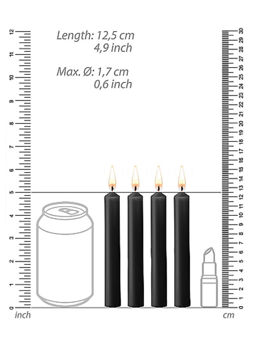 Pirrende vokslys i sort. Parafinlysene er perfekt for litt frekk temperaturlek med din kjære!
