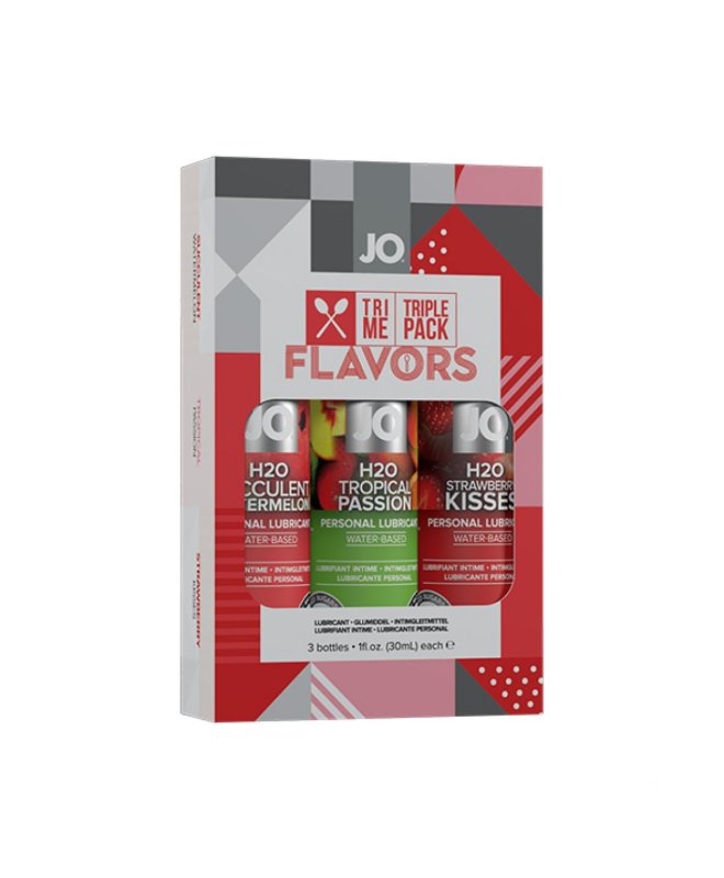 Hvorfor velge bare én smak når du kan få tre av de mest populære i én pakke? Dette settet fra System JO inneholder vannbaserte glidemidler med smak av vannmelon, pasjonsfrukt og jordbær. De er perfekte for deg som vil gjøre forspillet litt morsommere, enten du bruker dem hver for seg eller blander dem for å lage din egen fruktmiks.