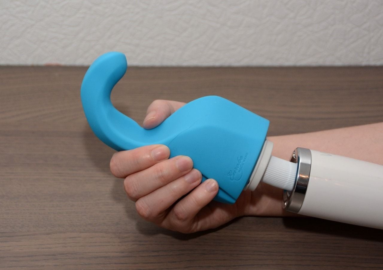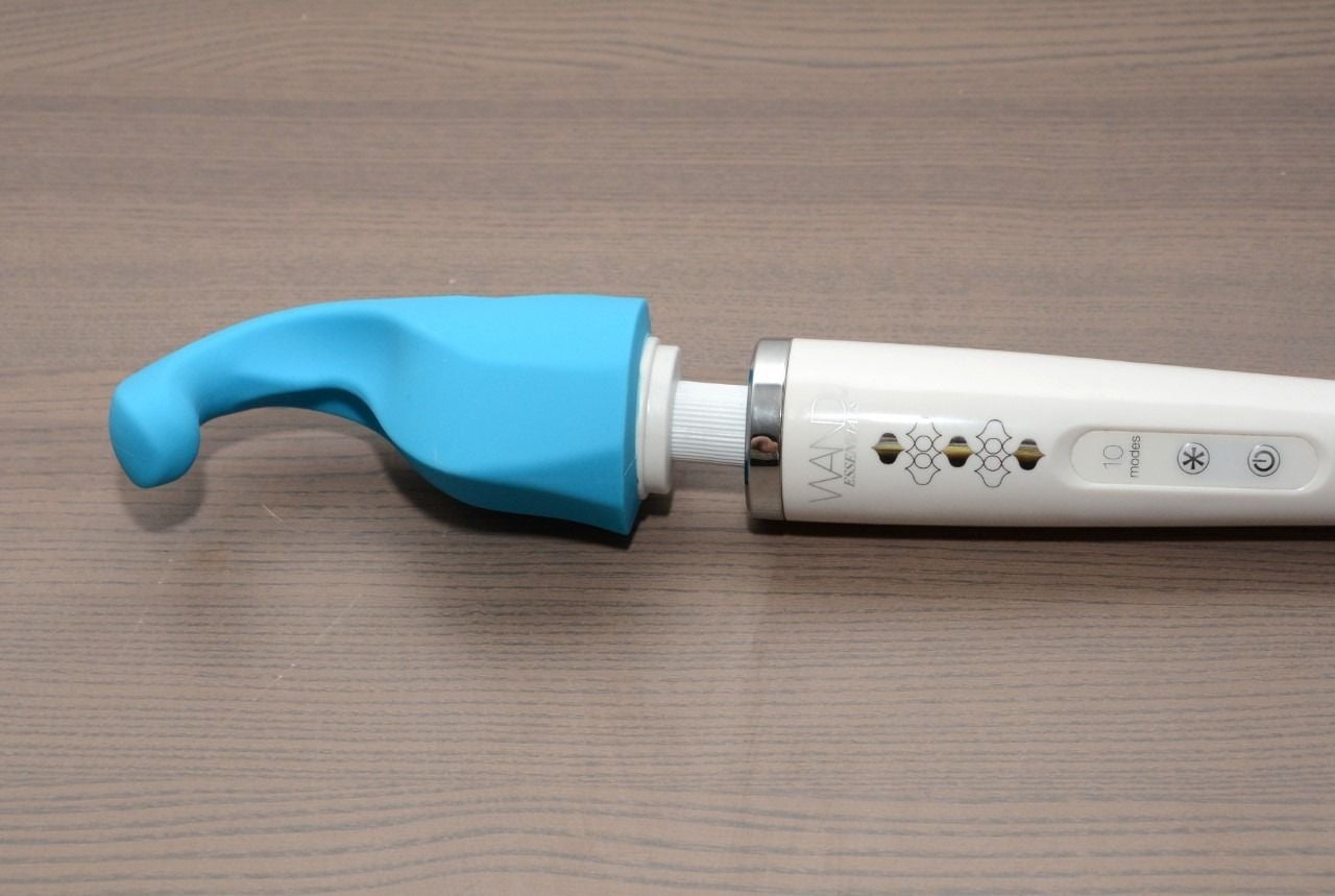 Jeg tok opzetstykket inn i meg. Til tross for den merkelige krokhaken-formen, passet den perfekt. Dette hadde jeg ikke forventet. Min forbavselse ble først ordentlig når jeg slå på wandvibratoren. De sterke vibrasjonene fra vibratoren gikk ubesværet gjennom silikonen og kom nå helt dypt inn i meg. Det føltes fantastisk! Alle fordelene som en wandvibrator gir, blir transformert med dette opzetstykket til en vanlig vibrator, men sterkere.