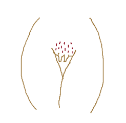 Denne vulvaen ligner på den like ovenfor. Derimot her er de ytre kjønnsleppene lengre fra hverandre noe som får den til å se litt mer 'åpen' ut og det indre kan bli sett.