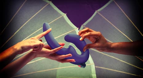 Share vibrator fra Fun Factory gir mulighet for handsfree strap-on uten belter og stropper. Et fantastisk sexleketøy for alle par, uansett kjønn.