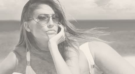 Så setter han seg opp og ser mot meg og smiler, saftene hennes glinser i ansiktet hans. Jeg begynner å gå opp av vannet. Hun reiser seg opp og kommer mot meg, møter meg noen meter fra strandkanten og glir ned på kne foran meg. Kuken min forsvinner inn i munnen hennes og hun begynner suge meg sultent. Jeg kjenner hvordan den melker meg og jeg blir hardere enn noen sinne. Nyter av å kjenne hvordan tunga hennes åler seg rundt skaftet og hvordan leppene glir opp og ned mens hendene hennes klemmer forsiktig på pungen min. Hun ser opp på meg og smiler mens hun tar den ut og kysser den, slikker den og småbiter i den med tennene. Gjør den våt og glatt før hun legger den mellom brystene sine og knuller meg litt med dem før hun går tilbake til å suge igjen. Hendene hennes finner veien rundt til rumpa mi og hun masserer den og klemmer den lett mens hun trekker underlivet mitt mot ansiktet sitt og svelger meg helt igjen. Han har kommet bort til oss nå og legger seg på ryggen under henne, åler seg frem mellom både mine og hennes ben før han nok en gang begynner å slikke henne. Hun justerer litt på sitteposisjonen sin for at han skal kunne komme bedre til og jeg ser henne lukke øynene og hører henne stønne lett før hun lukker leppene rundt kuken min igjen og fortsetter noen sekunder før hun ser opp på meg med glinsende kåte øyne og hvisker: «Ta meg!»
