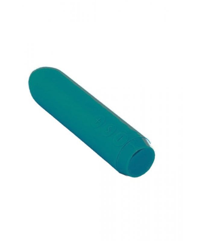 Denne klassiske bulletvibratoren har en nydelig blåfarge med et hint av grønt, og er både delikat og dekket av myk silikon. Vibratoren har en lett spiss som gjør det enkelt med punktstimulering. Leveres med et gratis feste for fingrene, noe som gjør vibratoren praktisk å bruke under samleie, eller hvis du fort blir nummen i fingrene av vibrasjoner.