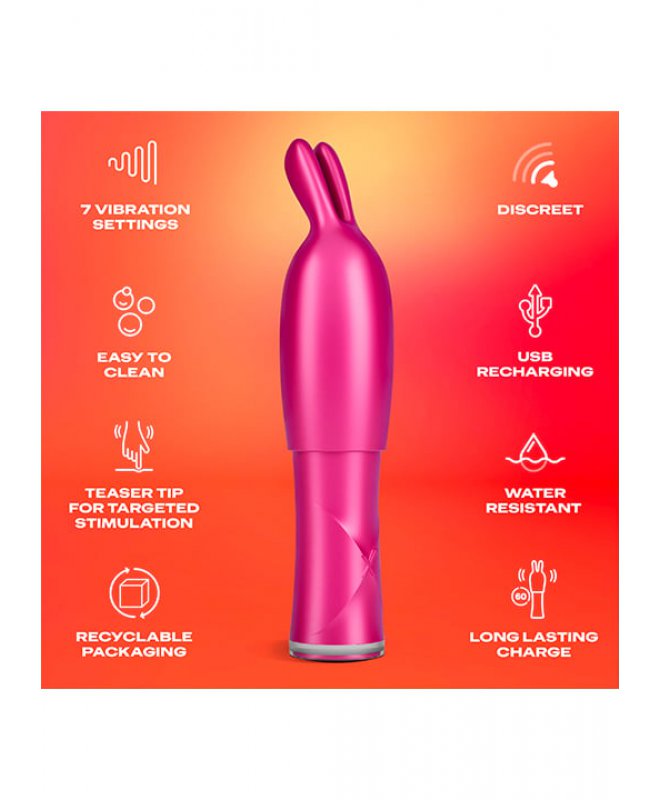 Bølger av nytelse venter deg med denne fantastiske 2 in 1 vibratoren fra Durex! Vibratoren er nemlig designet med en hette som "kaninører" som kan tas av om du ønsker. Med denne kan du prøve forskjellige kombinasjoner: Bruk vibratoren alene uten hetten, eller sett på "kaninørene" for ekstra moro! Uansett hva du liker, får du en pirrende opplevelse med denne vibratoren.
