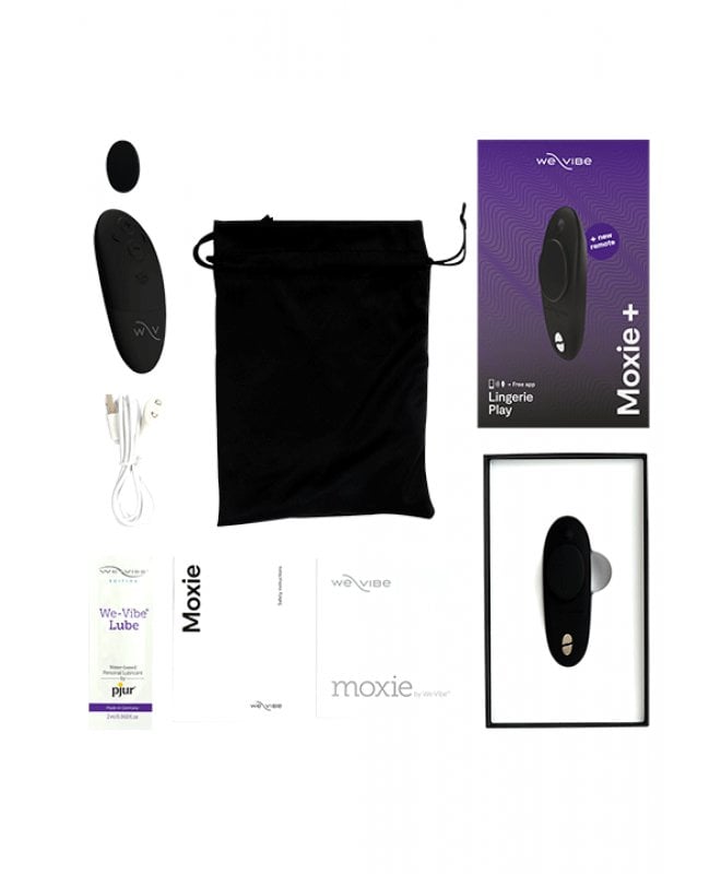 Dette er leketøyet for alle lekne par dere ute som vil gjøre date nights enda litt mer spennende! Moxie+ fra We-vibe kommer i en sexy sort farge, og har med en liten trådløs fjernkontroll. Trusevibratoren får lett plass i trusen din og er ergonomisk formet for å ligge perfekt mot klitoris. Vibratoren festes enkelt i trusen med en flat magnet, som plasseres utenpå trusen. Trusevibratoren holder seg på plass akkurat der du vil ha den og serverer deg dype og rumlende vibrasjoner. Bruk den med en sexy sort truse og opplev diskré nytelse på sitt beste – om du klarer å holde begeistringen for deg selv...