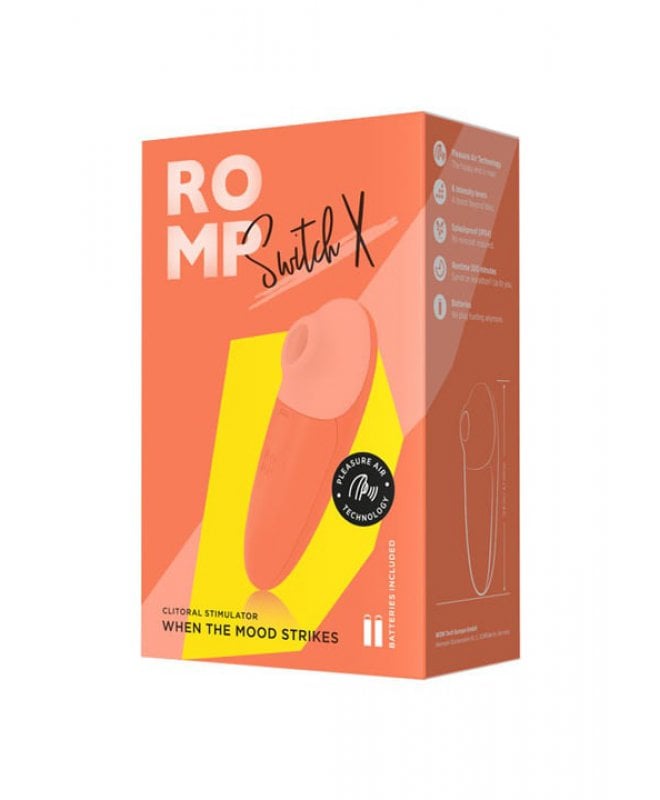 ROMP Switch X er en klitoris sugende vibrator som bruker innovativ Pleasure Air Technology for å stimulere klitoris med milde, men kraftige bølger av kontaktløst lufttrykk i en sugelignende bevegelse for et uforglemmelig klimaks. Fra milde bølger til topper av nytelse, ROMP Switch X har 6 forskjellige intensitetsinnstillinger for å levere det riktige nivået av klitorisstimulering for humøret og opphisselsen din.