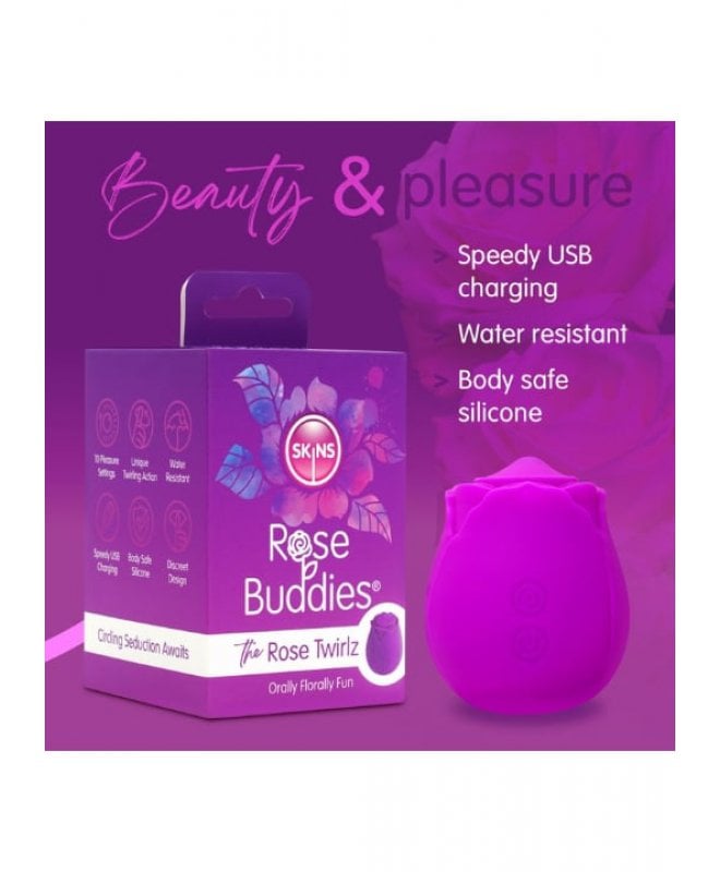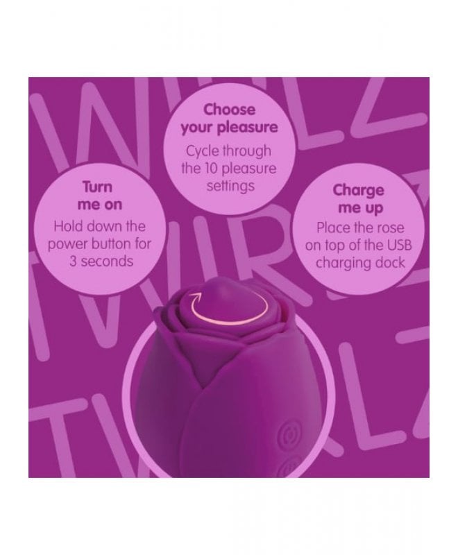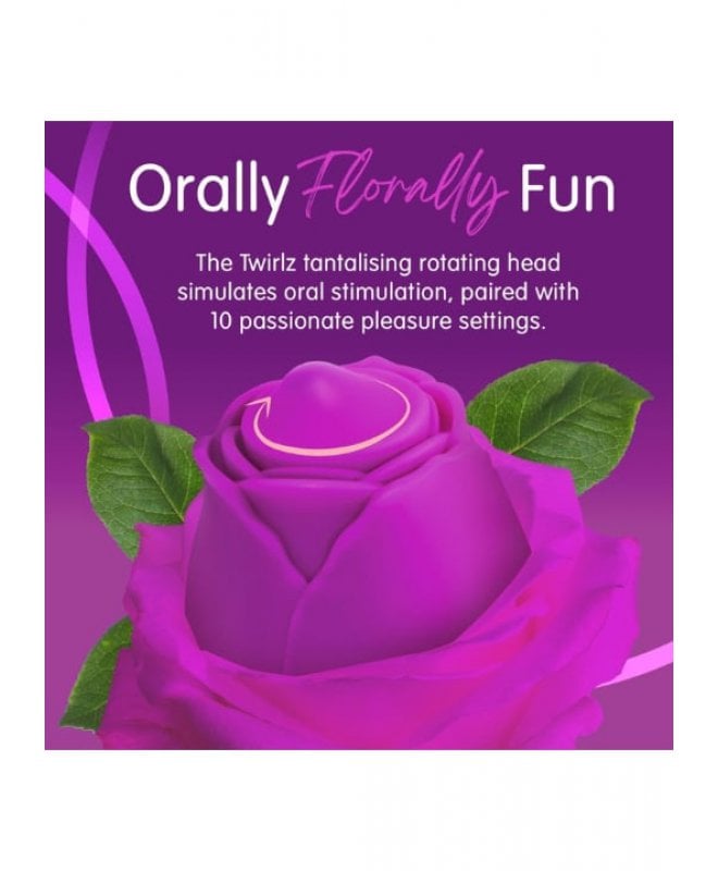 Dette er sexleketøyet for henne som elsker sirkulære bevegelser mot klitoris! Rose Twirlz er en fantastisk klitorisvibrator som kombinerer vibrasjoner og roterende bevegelser. Leketøyet er designet i et nydelig rosedesign med stimulator på topp, og denne beveger seg i pirrende sirkulære bevegelser.