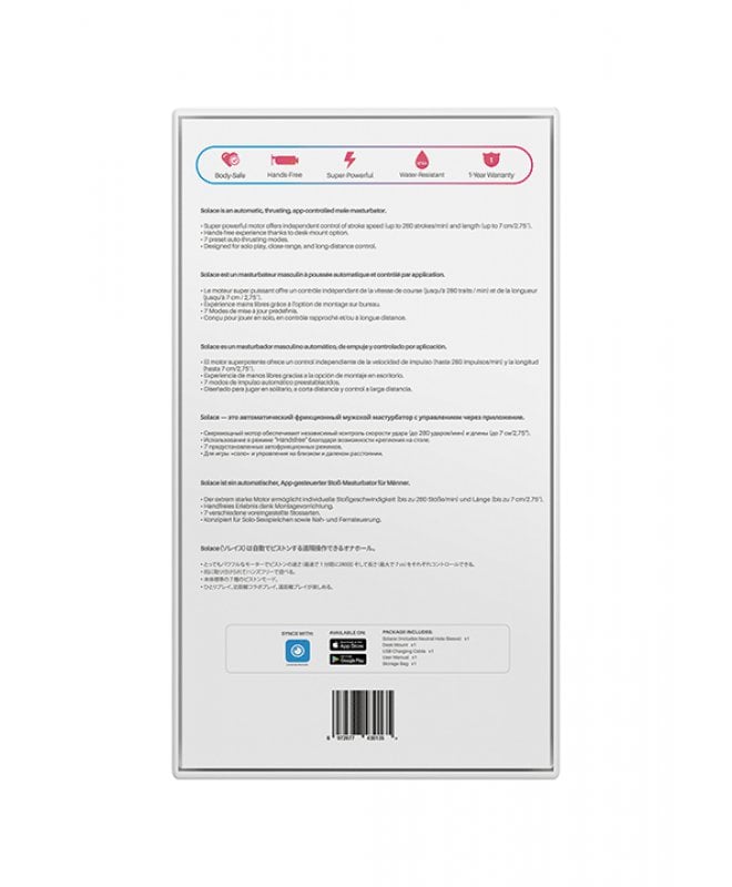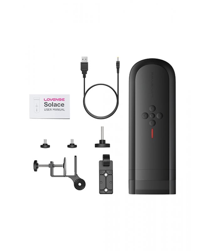 Sammen med masturbatoren får du et genialt bordfeste. Den stabile bordfestingen gir mulighet for flere posisjoner, og du kan enkelt justere den for ulike scenarier. Leketøyet kobles enkelt til mobilen din og kan styres via deres app, perfekt for langdistanseforhold! Innenfor appen kan du utforske ulike intensitetsnivåer, fra lette og langsomme støt til mer intense og raske. Rengjøring er enkelt – pop ut sleevebeholderen, ta ut sleeven, vask med lunkent vann og intimsåpe, og avslutt med vibratorrens. Voilá! Solace er klar for en ny runde...