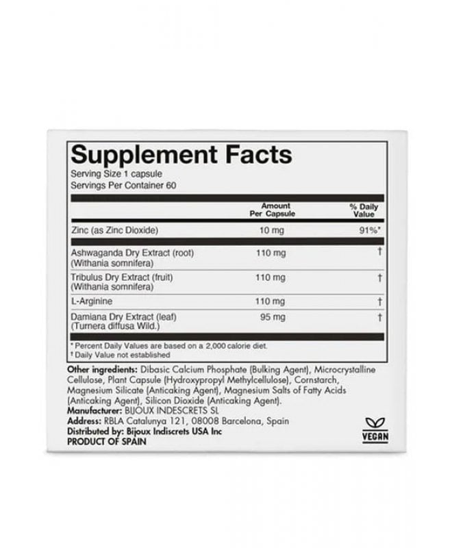 Kapslene inneholder en unik blanding av planteekstrakter og mineraler som har vært brukt i århundrer for å styrke sexlyst og velvære. Damiana øker libido og stimulerer sirkulasjonen, Ashwagandha hjelper kroppen å håndtere stress, mens Tribulus Terrestris vekker lysten igjen. I tillegg støtter sink immunforsvaret, og L-arginin bidrar til økt blodgjennomstrømning – viktig for både opphisselse og orgasme.