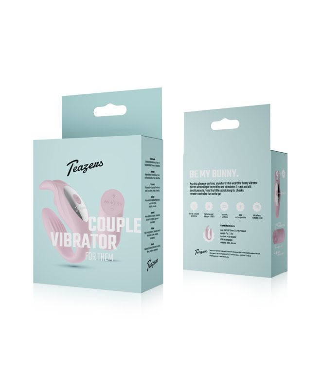 Teazers Bunny parvibrator er laget for å brukes under samleie, og gir stimulering til begge samtidig. Den fleksible C-formen gjør at den sitter godt på plass, med den ene delen innvendig og de myke ørene som ligger mot klitoris. Resultatet er en mer intens opplevelse hvor dere ikke bare fokuserer på deres egen nytelse, og lar dere dele hver eneste bølge sammen.