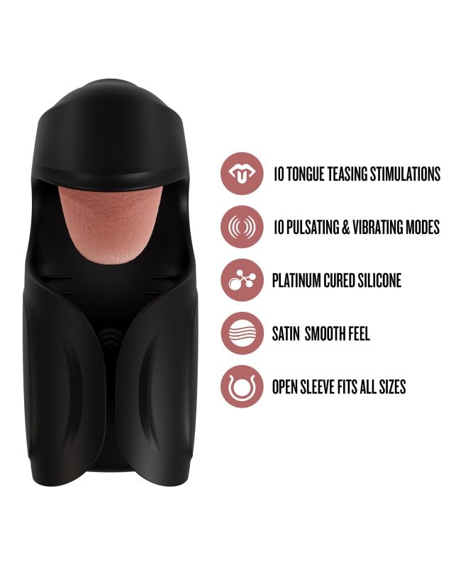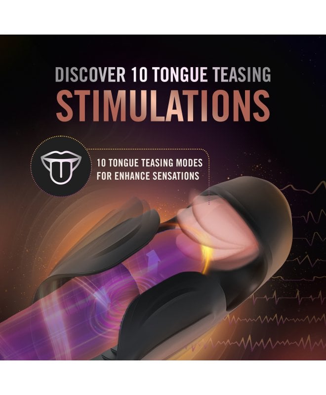 Den åpne og fleksible formen lar deg styre hvor tett det sitter, slik at du kan justere trykket og finne det som føles best underveis. Du kan klemme rundt penishodet, variere grepet og tilpasse opplevelsen etter hva du er ute etter der og da. Med 10 vibrasjonsmoduser og 10 tungeinspirerte bevegelser er det enkelt å teste seg frem, enten du vil ta det rolig eller bygge det opp litt mer. Perfekt for edging, trening eller bare når du vil kjenne litt ekstra.