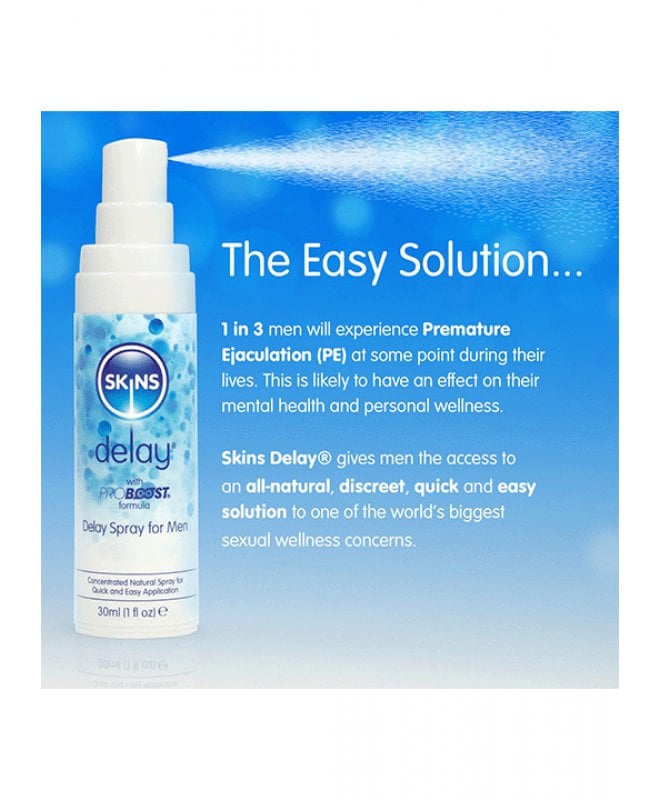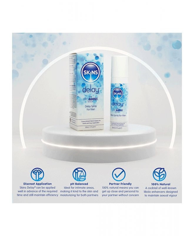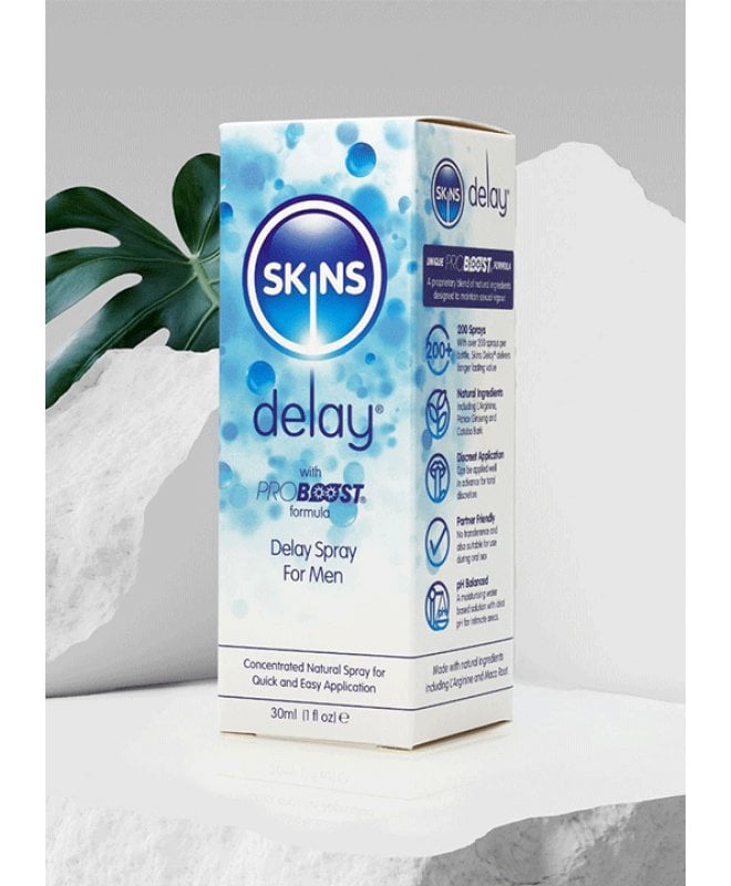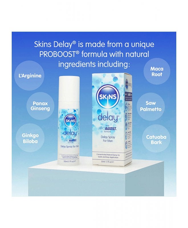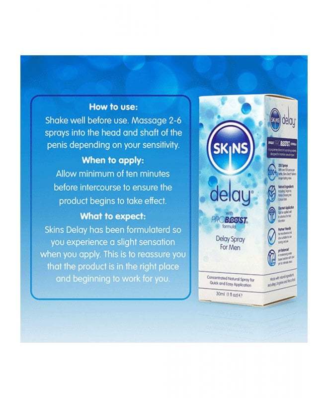 Transformér dine intime øyeblikk med Skins Natural Delay Spray - din ultimate følgesvenn for lengre og mer tilfredsstillende sex! Ønsker du å heve nivået av nytelse og oppleve økt utholdenhet på soverommet? Da er Skins Delay Spray skapt for deg! Denne fantastiske sprayen gir deg ikke bare diskret, rask, og enkel hjelp til å forlenge dine intime øyeblikk, men den tar også din seksuelle opplevelse til nye høyder. Med den unike Proboost-formelen, beriket med ingredienser som L'Arginine, Panax Ginseng, Gingko Biloba, Maca Root, Saw Palmetto, og Catuaba Bark, blir Skins Delay Spray en kraftig alliert for å øke din utholdenhet og intensivere nytelsen.