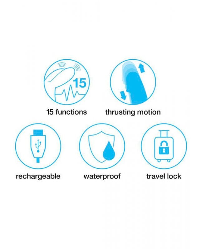 • Vibrasjonsmønstre: 15 vibrasjonsmønstre (12 hastigheter og mønstre i ørene, 3 hastigheter i skaftet)