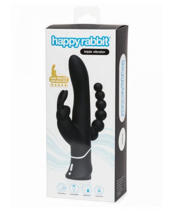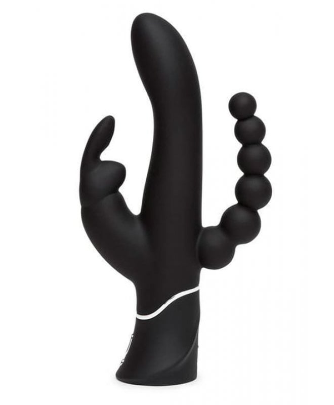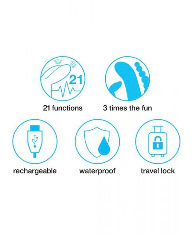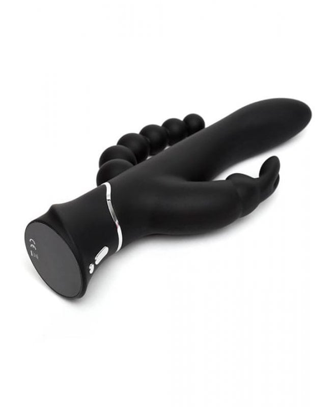 Synes du at vanlige vibratorer blir for "basic"? Endelig har dine bønner blitt hørt. Med denne triple rabbiten når du himmelriket i rakettfart. 3 motorer leverer 21 ulike vibrasjonsmoduser for å tilfredstille alle dine "sweet spots". Klitoris vil elske kaninørene, og med en bøy treffer skaftet lettere g-punktet. Analkulene har ulike størrelser, slik at du kan stoppe der hvor det er behagelig for deg. Husk å bruke rikelig med vannbasert glidemiddel!