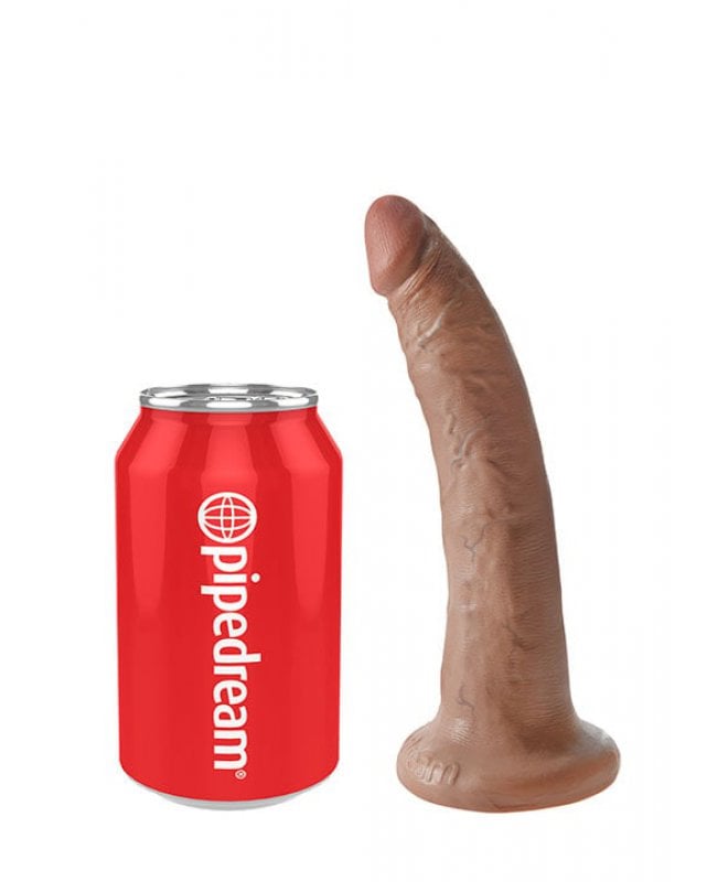 Er du ute etter en steinhard og leken dildo som ser og føles ut som den du alltid har fantasert om? Da kan du slutte å drømme. Denne dildoen fra King Cock er håndlaget ned til hver minste detalj for å gi deg den mest realistiske opplevelsen du kan få. Dette er en deilig dildo som også har sugekopp under slik at du enkelt kan feste den på alle flate overflater. Så kan du ha det moro i alle rom.. Kanskje du skal ta deg en ekstra lang dusj med denne? Dildoen kommer i en lang lengde på 17,8 cm og er perfekt å kombinere med strap-ons. Bruk den sammen med partneren din eller nyt litt alenetid!