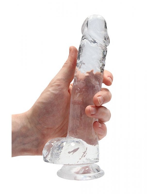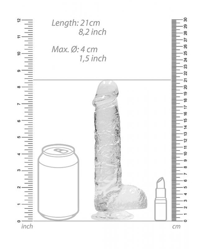 Kvinne om Dildo med baller transparent 21 cm