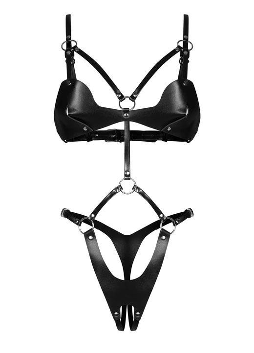 Denne teddyen er laget for deg som liker undertøy med litt ekstra edge. Det syntetiske skinnet gir en glatt, blank overflate som sitter tett mot kroppen og fremhever formene på en måte som er både dristig og veldig sexy.