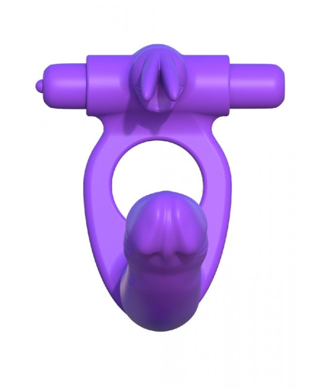 C-Ringz Double Penetration gir deg full pakke, to peniser på en og samme tid. Ringen er laget i elastisk silikon og utstyrt med en liten kanin. Kaninørene rister når du setter på vibratoren! Treffer klitoris med heftige vibrasjoner.