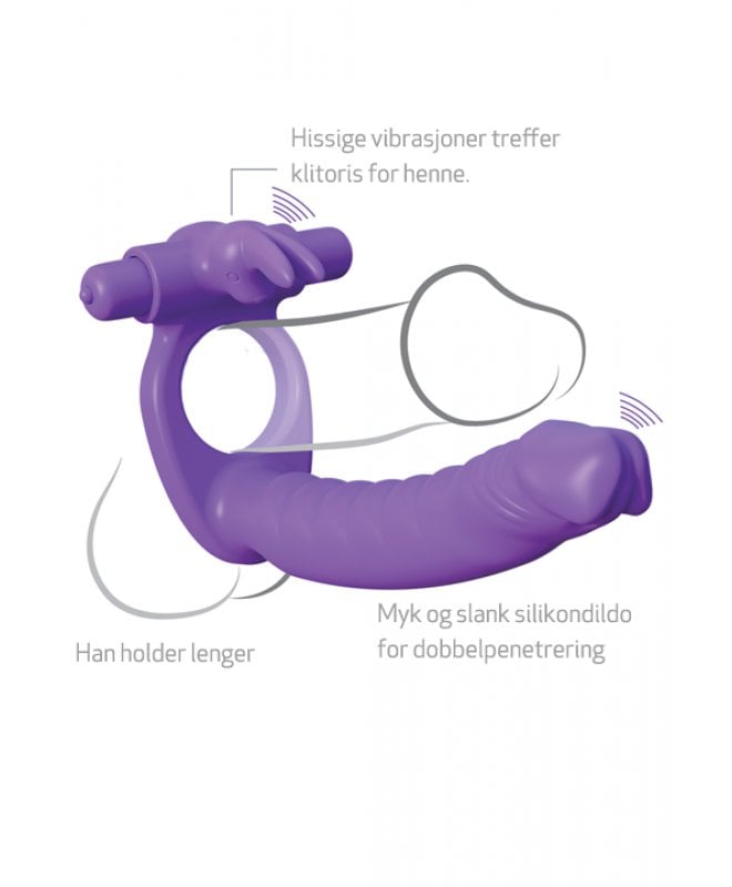 Drømmer du om to menn? Da er denne penisringen med ekstra dildo en god investering. En ekte sandwich med den deiligste kjæresten!