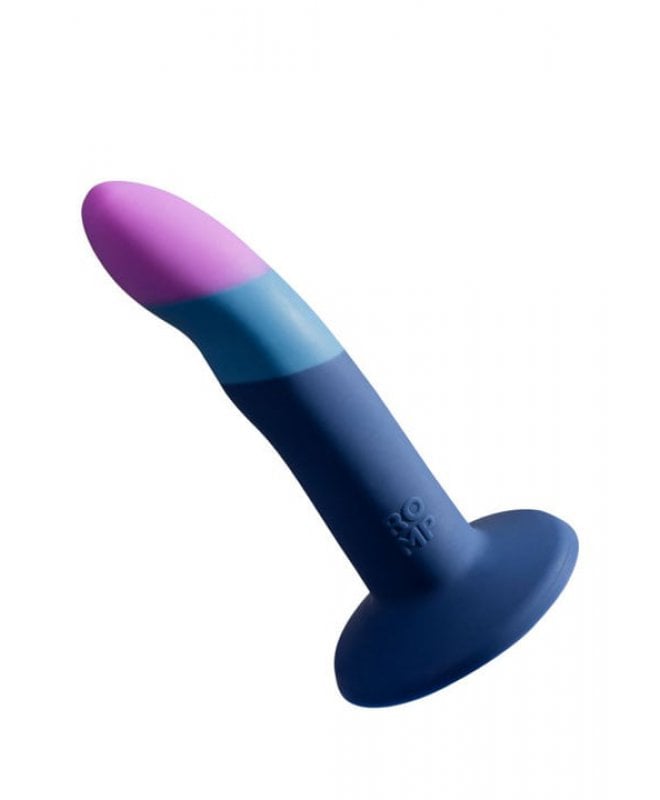 Dildoen har en deilig fasthet og en form som gir både p-punkt og g-punkt det de vil ha, enten du bruker den vaginalt, analt eller som del av dobbel penetrering. Basen har en solid sugekopp og et lite hull som passer perfekt med bulletvibratoren ROMP Riot, for deg som vil legge til ekstra vibrasjon underveis.