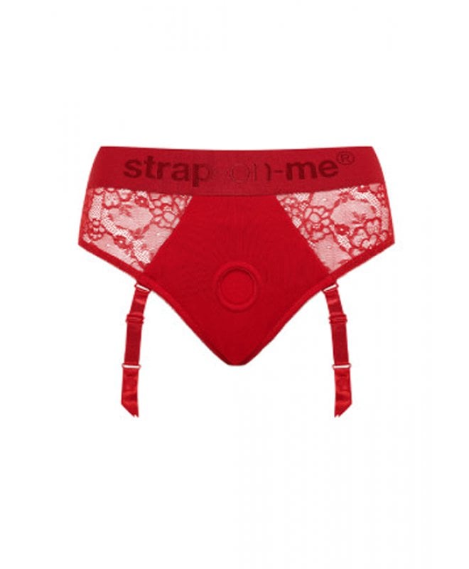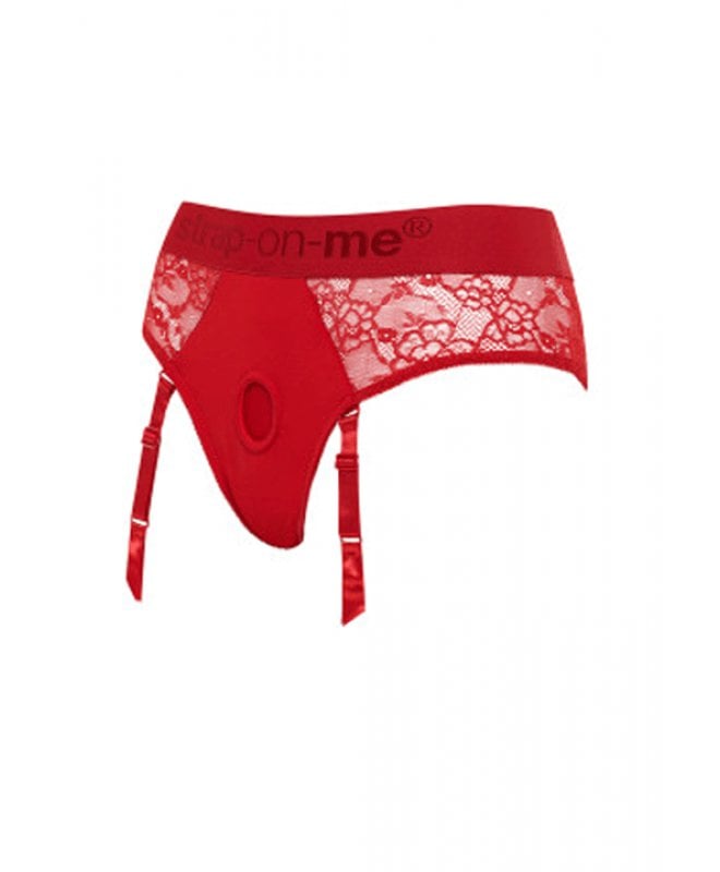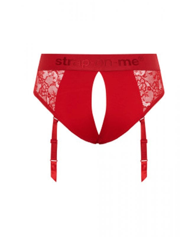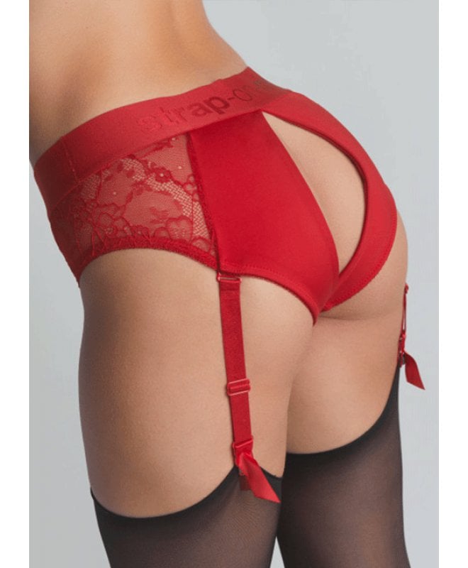 Genialt undertøy hvor du får strap-on-belte og en sexy truse! Denne gir deg enda mer stødighet under bruk, samtidig som du ser lekker ut... Undertøyet er laget i et delikat og luksuriøst materiale som legger seg pent rundt kroppen din. I front har trusen en åpning for å plassere dildoen i, og bak er det en sexy åpning. Trusen er designet slik at strap-onen sitter godt plassert i åpningen og vil ikke falle ut under bruk. Det er to stropper på hvert ben, én foran og én bak, som begge er justerbare og kan festes til et par sexy strømper. Strap-on-trusen sitter pent rundt hoftene dine og avslører akkurat nok til å forføre partneren din til noe mer... Trusen kommer i en størrelse L, men har elastisk strikk i midjen!