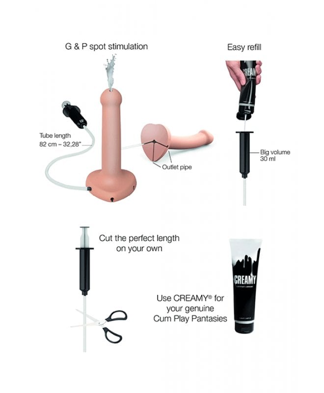 Opplev en sensuell og autentisk opplevelse med denne strap-onen fra Strap-on-me. Den unike strap-onen, laget av ultra-mykt silikon, gir deg ikke bare en følelse av mykhet og eleganse, men også en smidighet som forsterker hvert øyeblikk. La deg forføre av den realistiske formen og de myke kurvene mens dere utforsker nye høyder sammen. Den medfølgende sprøyten og slangen har god væskekapasitet, slik at du kan gi en skikkelig utløsning når den tid kommer... For å forsterke den autentiske følelsen, anbefaler vi å bruke et hvitt glidemiddel (obs, følger ikke med). Praktisk og enkel å bruke, beholderen er enkel å fylle og rengjøre etter deres erotiske eventyr. (Seler følger ikke med, men kan kjøpes separat for å fullføre din strap-on-opplevelse.) Utforsk dine innerste fantasier med denne strap-onen som kombinerer estetikk og nytelse på en unik måte!