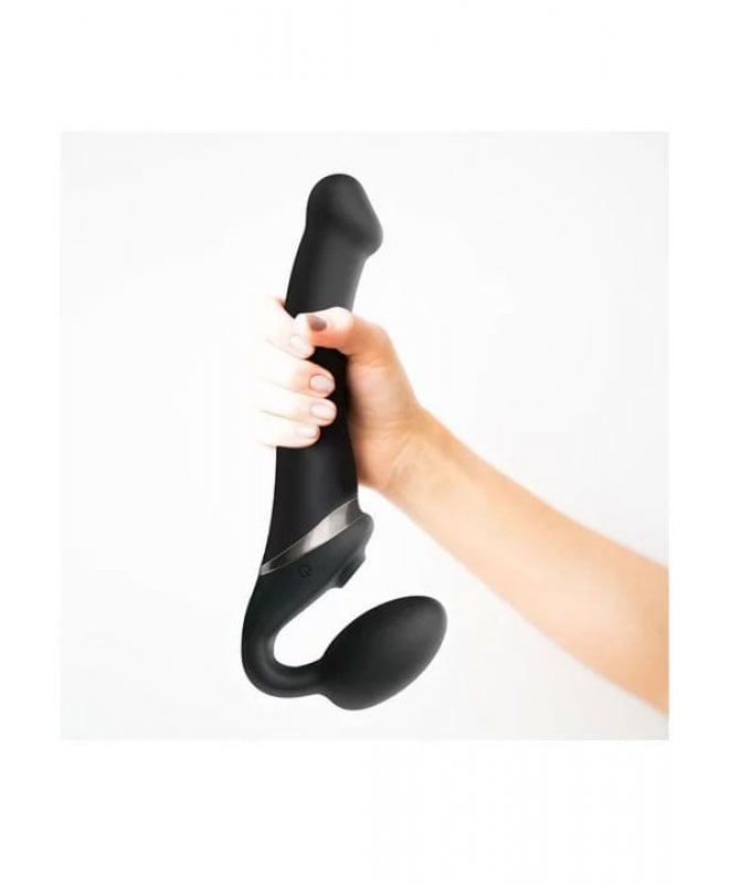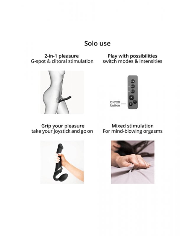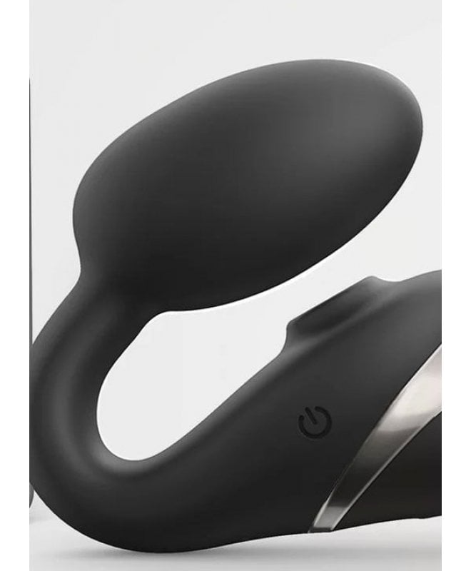 Den eggformede enden føres inn i skjeden og vil sitte komfortabel på plass på grunn av sin anatomiske form. Dette gjør den genial som sitter på plass helt av seg selv, uten å bruke sele, belte eller hender! Den gir også deilige vibrasjoner rett mot g-punktet. Staken på dildoen er slank og fleksibel slik at du kan tilpasse vinkelen slik du ønsker. Denne gjør det vanskelig å holde orgasmene tilbake...