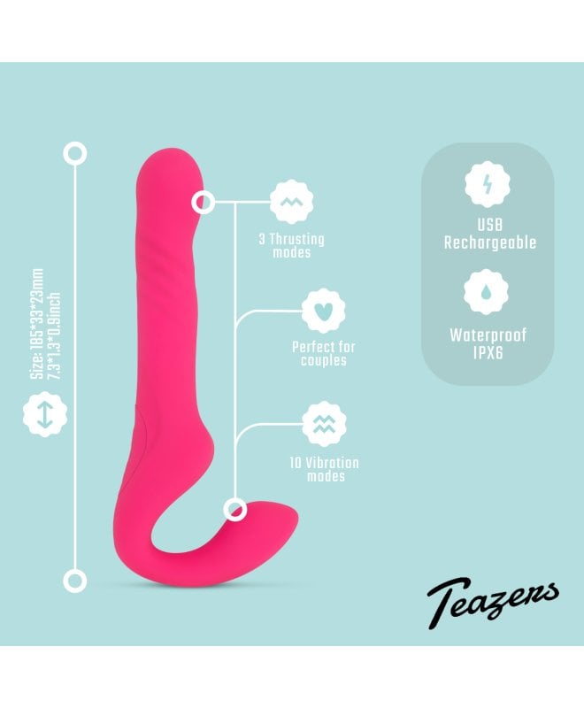 Er du ute etter sexleketøyet som lar dere begge få fullt utbytte? Da må du prøve denne fra Teazers. Dette er en strapless strap on med vibrasjoner som er laget for å brukes uten sele, og som gir stimulering til begge samtidig. Den ene delen sitter komfortabelt og gir deg nytelse underveis, mens den andre delen er klar for partneren din. Formen gjør at sexleketøyet holder seg på plass, slik at dere kan fokusere på det som faktisk skjer – og ikke på å justere underveis.