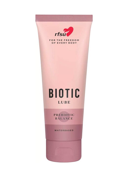 Denne herligheten er RFSU Biotic Lube, et vannbasert intimt glidemiddel med prebiotika og aloe vera som hjelper deg å bevare balansen down there. Den gir både fuktighet og pleie, og er spesielt utviklet for deg med sensitiv hud eller tendenser til tørrhet.