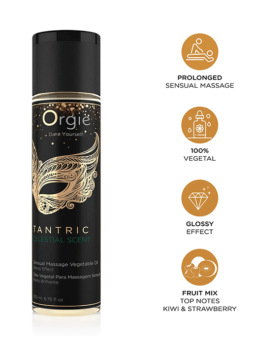 Tantrisk massasjeolje fra Orgie er ideell for deg som elsker intimmassasjer! Den er sammensatt av 100% vegetabilske oljer, som gir huden en glansfull og fuktig følelse.