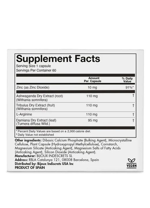 Kapslene inneholder en unik blanding av planteekstrakter og mineraler som har vært brukt i århundrer for å styrke sexlyst og velvære. Damiana øker libido og stimulerer sirkulasjonen, Ashwagandha hjelper kroppen å håndtere stress, mens Tribulus Terrestris vekker lysten igjen. I tillegg støtter sink immunforsvaret, og L-arginin bidrar til økt blodgjennomstrømning – viktig for både opphisselse og orgasme.