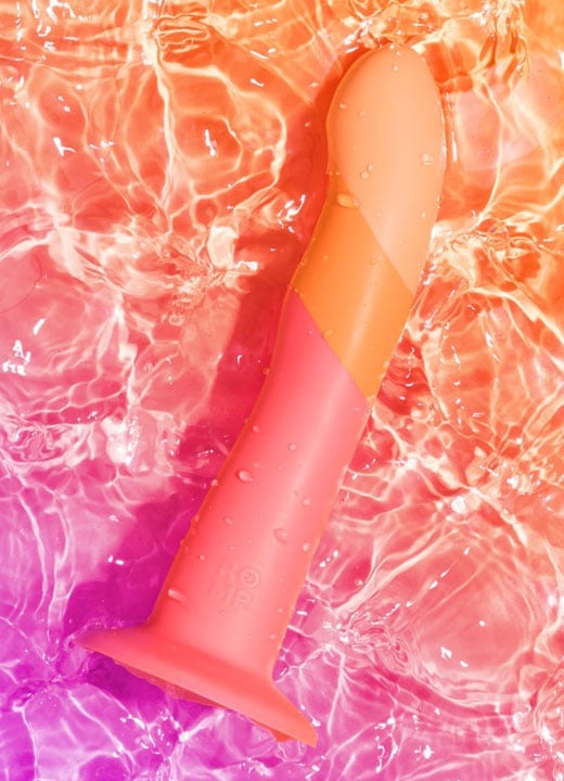 Overflaten er glatt og silkemyk, og den solide sugekoppen gjør at du kan feste den hvor du vil på en glatt flate, i dusjen eller i en strap-on-sele for leken parsex. Du kan også sette inn bulletvibratoren ROMP Riot i bunnen hvis du vil legge til deilige vibrasjoner.