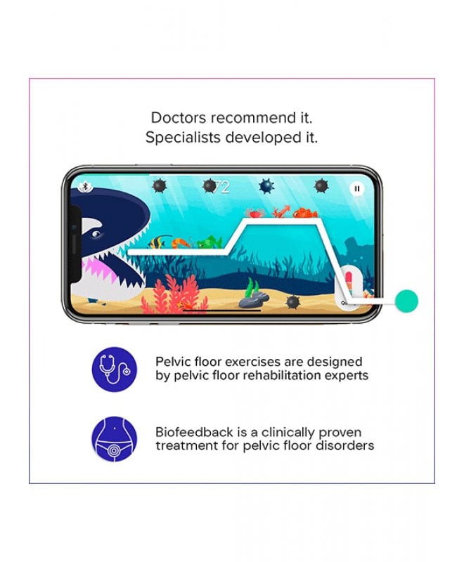 Bekkenbunntreneren brukes i kombinasjon med en app (med samme navn), slik at knipeøvelsene blir enklere og morsommere. Den lar deg rett og slett styre mobilspill via bekkenbunnen! Spillene og treningsoppleggene i appen er utviklet av leger, sånn at det skal bli enklere for deg å styrke og trene bekkenbunnen på riktig måte. Du kan velge mellom 7 forskjellige program og kan se resultater allerede etter to uker!