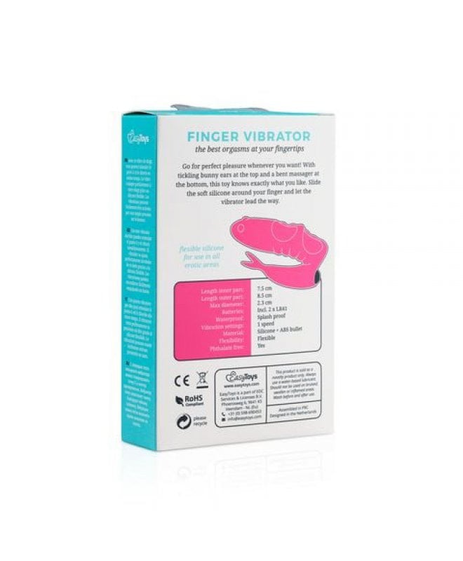 Denne fingervibratoren forvandler fingeren din, eller partnerens finger, om til en rabbitvibrator! Den gjør det nemlig mulig å stimulere både g-punktet og klitoris på én og samme tid, med deilige vibrasjoner... Takket være den fleksible silikonen passer vibratoren enhver finger. Dette lille sexleketøyet kan gi stor nytelse, under samleiet og forspillet - eller alenestuden... Vibrasjonene er enkle å styre, og kan slås av og på med et enkelt trykk på knappen. Fingervibratoren er ikke helt vanntett, men tåler en sprut. Den bør derfor ikke tas med i badekar eller dusj, men kan rengjøres med en fuktig klut. Bruk gjerne vibratorrens etter du har rengjort med vann og intimsåpe.