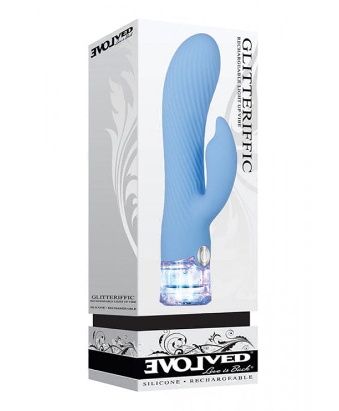 Rabbitvibratoren er utrolig fin å se på. Den har en dus blåfarge og et lekkert glitterhåndtak. Håndtakets LED-lys lyser opp når du skrur på rabbitvibratoren og glitteret vil danse rundt i væsken inne i håndtaket! Dette vil også gjøre det enklere å navigere under dyna… Rabbitvibratoren er dessuten helt vanntett. Ta den med deg i badekaret og se hvordan glitterhåndtaket skinner med enda større lysstyrke. Rabbitvibratoren er også oppladbar!