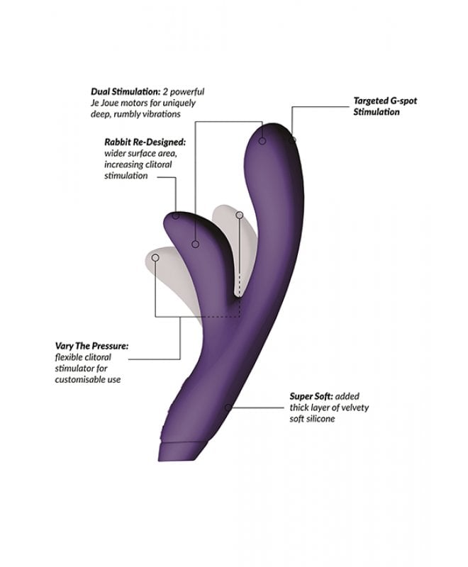 På tide å oppgradere rabbitvibratoren din? Da er det Hera fra Je Joue du bør investere i. Det er ikke uten grunn at dette er en av våre bestselgende merker... Hera er en klassisk men unik rabbitvibrator som er designet for å gi deg enda bedre nytelse, takket være dens nye design og funksjoner. Dette er nemlig en av de mykeste og slankeste rabbitvibratorene på markedet! Designet med en supermyk tupp som gir rumlende vibrasjoner direkte til g-punktet, og et kortere fleksibelt skaft for å gi deg deilige vibrasjoner mot klitoris. Forbered deg på herlige kombinasjonsorgasmer... Det korte skaftet er bøyelig og kan tilpasses slik at du treffer akkurat de riktige nytelsespunktene.