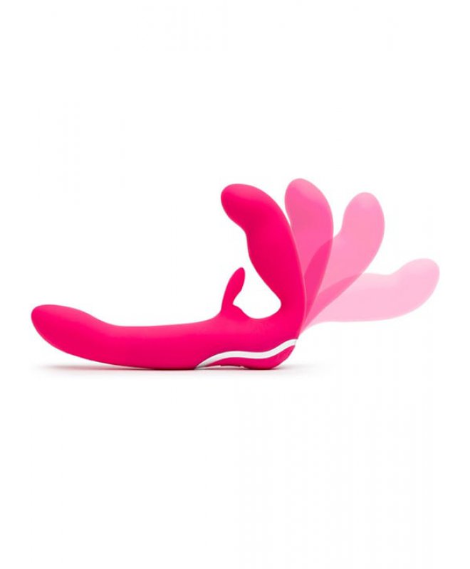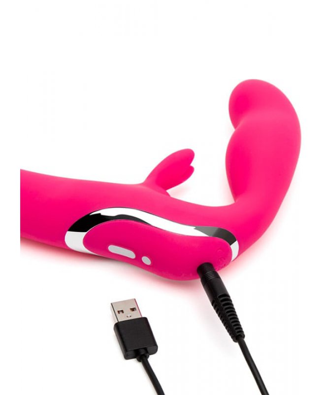 Vibratoren er laget av glatt, fløyelsaktig silikon og har 15 ulike vibrasjonsmuligheter! Den korte delen er justerbar og holder leketøyet på plass i skjeden din, mens du gir nytelse til partneren din. Den korteste delen er formet for behagelig innsetting og kan justeres slik at kaninørene erter klitorisen til den som “bærer” vibratoren.