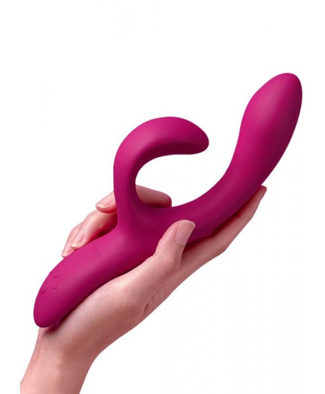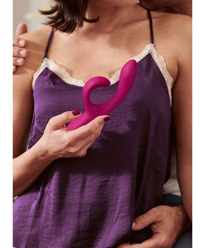 En rabbitvibrator er laget for å stimulere både klitoris og g-punktet på én og samme tid. Men med klassiske rabbitvibratorer oppnår man kun kontakt med klitoris hver gang leketøyet skyves inn. Med Nova 2 er dette problemet løst! Nova 2 er den eneste rabbitvibratoren som sikrer uavbrutt stimulering av klitoris, uansett hvordan du beveger leketøyet. Den ytre klitorisdelen er ekstremt fleksibel og bøyer seg med bevegelsene dine for å være i konstant kontakt! Det betyr at du ikke behøver å måtte gjøre justeringer i de viktigste øyeblikkene... Den indre g-punktvibratoren er dessuten også justerbar i enden av skaftet, slik at den kan tilpasses din unike kropp. Det ergonomiske håndtaket er enkelt å holde i og du kan lett styre vibrasjonene akkurat dit du vil ha dem.