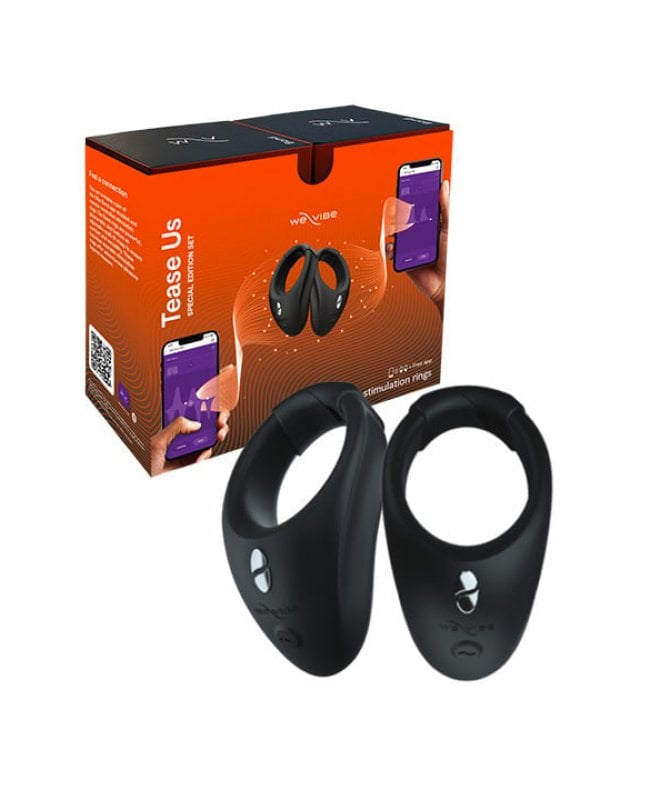 We-Vibe Bond er et sexleketøy som kan brukes helt diskré under klærne, hvor som helst og når som helst, og styres via både fjernkontroll og app.We-Vibe Bond er ikke i utgangspunktet laget for å gi en kraftigere ereksjon, men for å pirre og tease den som har den på, og for å ta forspillet til neste nivå - akkurat som en trusevibrator for menn! Ringen festes rundt penis og pung for å vibrere mot perineum (området mellom pung og anus). Dette området er svært følsomt for menn, og kan gi en helt ny og deilig følelse ved stimulering. Penisringen legger seg tett inntil kroppen og er svært stillegående, så her kan dere lett ta nytelsen ut av soverommet... Ved å bruke Bond kan dere gjøre forventningen om sex like god som selve akten! Og i dette gavesettet får dere ikke bare én We-Vibe Bond - men én hver. Og til en billigere penge enn ved å kjøpe dem separat!